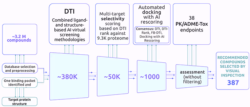 - A binding pocket was identified by Receptor.AI at the protein-protein interface using a proprietary AI model for the binding site identification.
