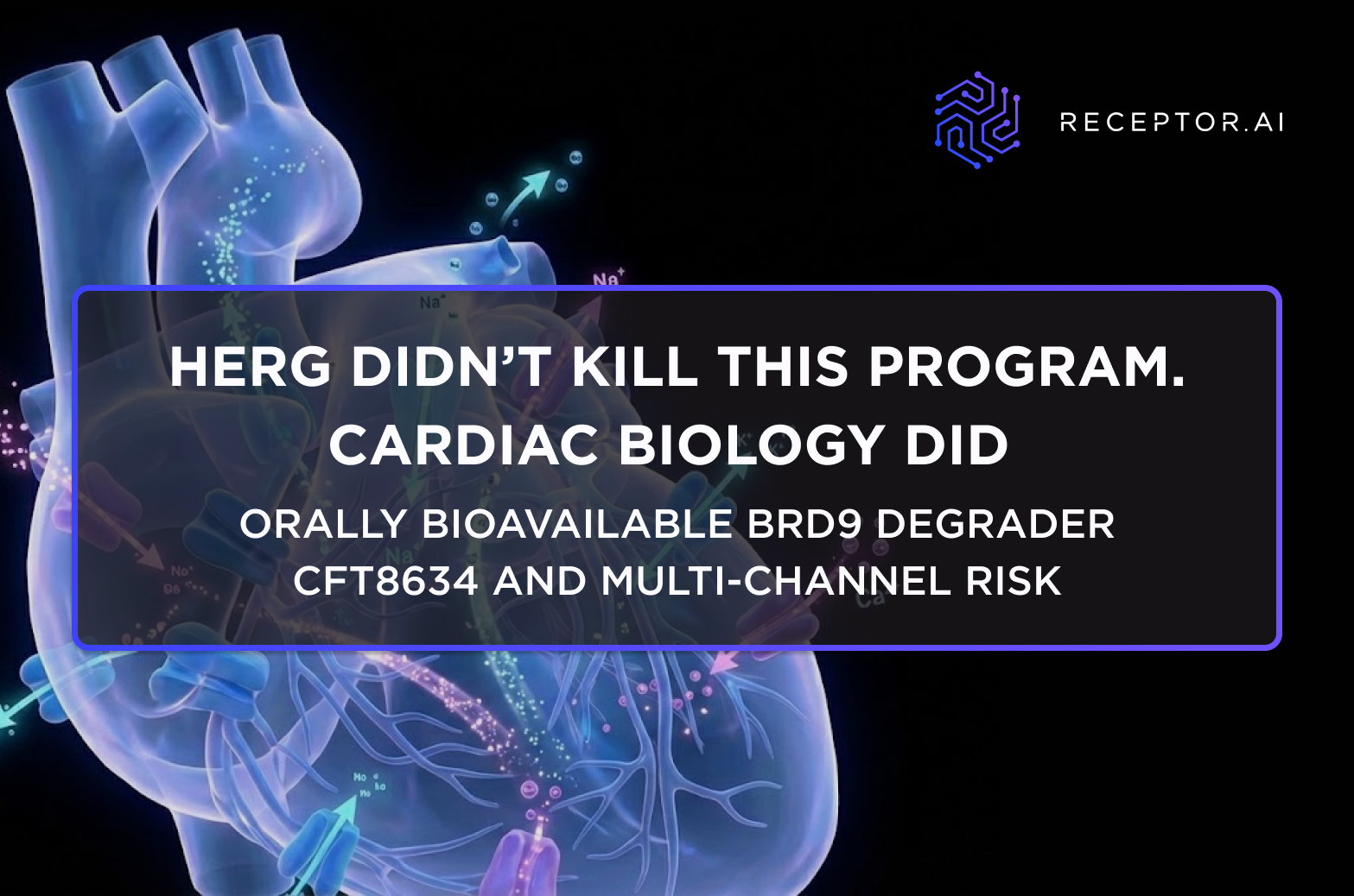 Cardiac safety failures are rarely “unexpected” in hindsight; they are usually the consequence of evaluating a system-level liability with a single-channel proxy. QT prolongation and torsades de pointes risk emerge from coordinated effects across multiple ion channels, where individually modest perturbations can combine into a clinically meaningful phenotype. The CFT8634 case illustrates the practical cost of relying on hERG-centric screening. A modern, decision-grade approach must integrate multi-channel pharmacology with mechanistic electrophysiology to surface risk early, when programs still have options to redesign molecules, optimize exposure, and mitigate liabilities. Receptor.AI’s CARDINAL is built to deliver that systems-level readout upstream, reducing late-stage surprises and improving the probability that clinically effective compounds remain clinically viable.